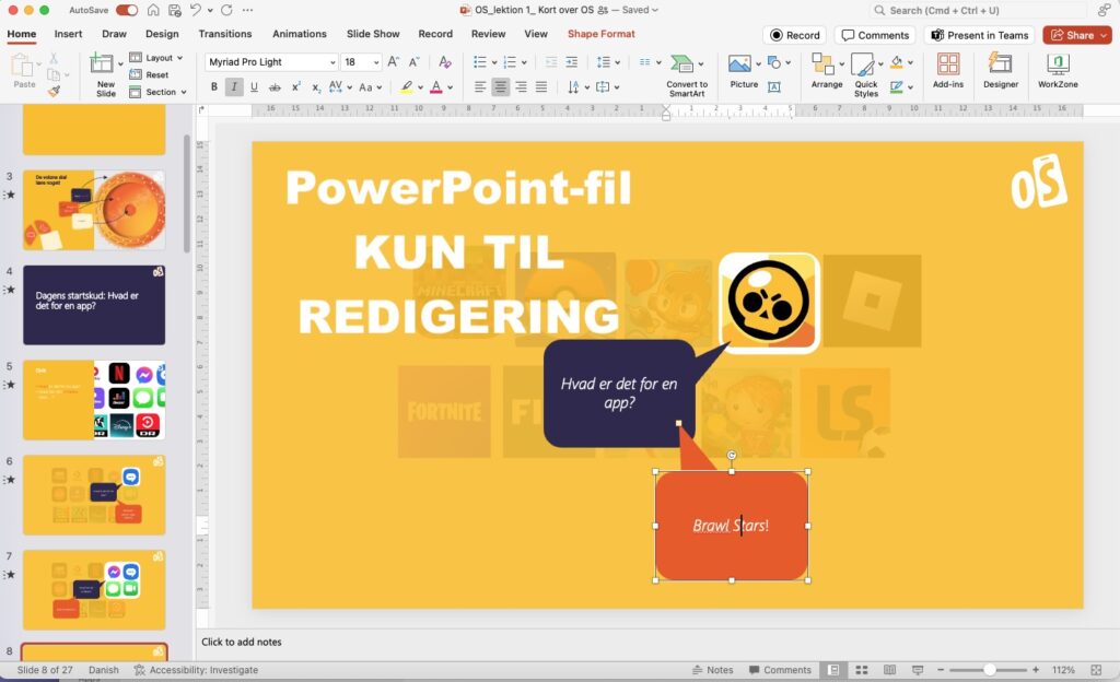 - OS-lektioner bruger pdf-slides, og læreren skal printe A4 og A3-materialer til grupperne.