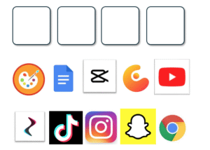 - Skriv/tegn først manglende apps, osm eleverne bruger til daglig, i de tomme felter på klippe-klistre arket.