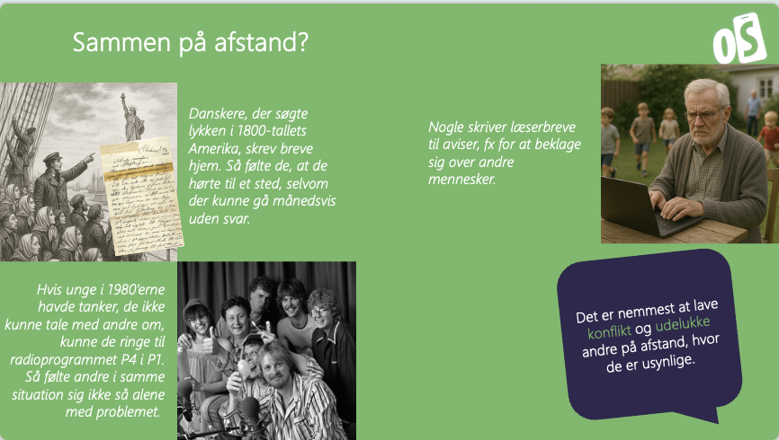 Mennesker har altid fundet sociale ressourcer og måder at udtrykke sig på – for eksempel gennem amerikabreve og ungdomsradio. Samtidig kan det også virke modsat. Et eksempel er, hvordan det at skrive (læser)breve kan blive en aggressiv eller uheldig handling, fordi det er lettere at formulere grove eller ekskluderende budskaber, når man ikke står ansigt til ansigt med den, det går ud over.